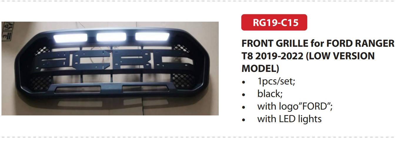 FRONT GRILLE for FORD RANGER – T8 2019-2022 (LOW VERSION MODEL) | RG19-C15