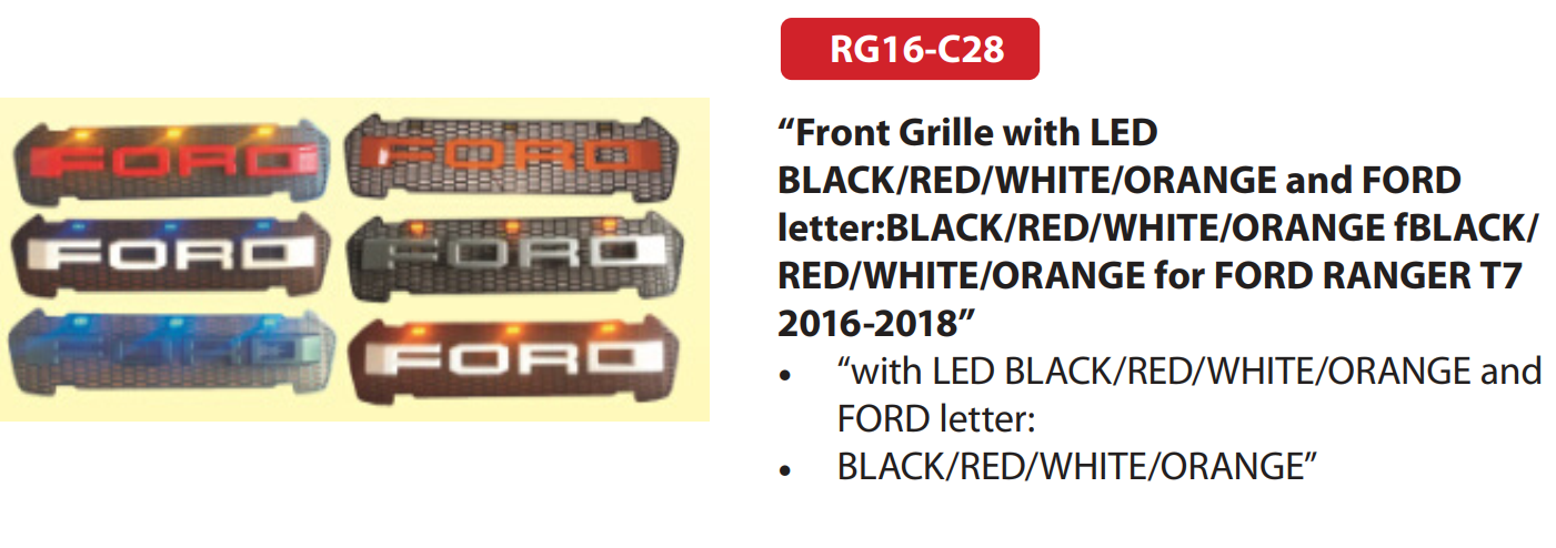 “Front Grille with LED BLACK/RED/WHITE/ORANGE and FORD letter:BLACK/RED/WHITE/ORANGE fBLACK/ RED/WHITE/ORANGE for FORD RANGER T7 2016-2018”