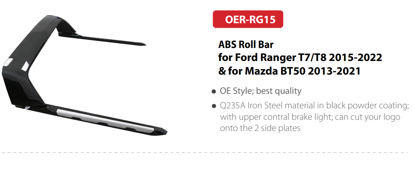 OER-RG15 | ABS Roll Bar for Ford Ranger T7/T8 2015-2022 & for Mazda BT50 2013-2021