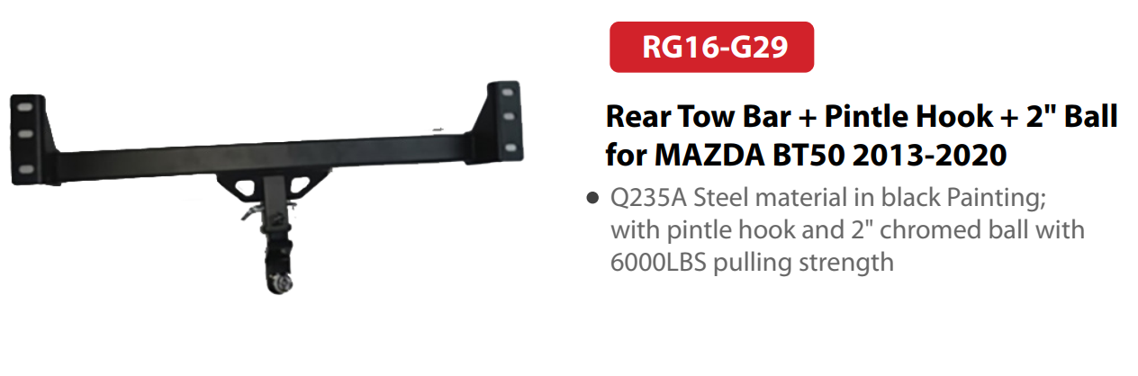 Rear Tow Bar + Pintle Hook + 2″ Ball for MAZDA BT50 2013-2020