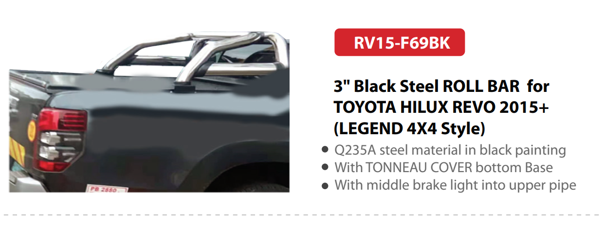 RV15-F69BK | 3″ Black Steel ROLL BAR for TOYOTA HILUX REVO 2015+ (LEGEND 4X4 Style)