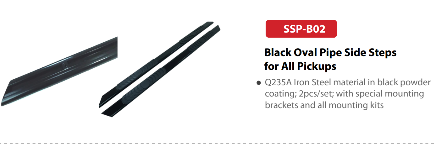 SSP-B02 | Black Oval Pipe Side Steps for All Pickups