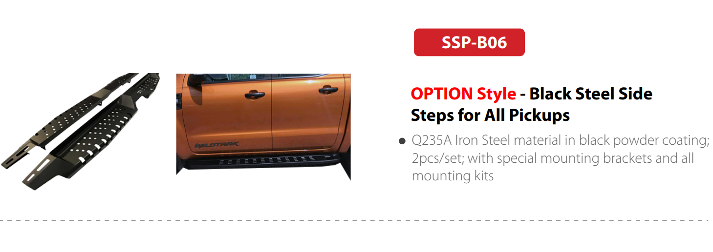 SSP-B06 | OPTION Style – Black Steel Side Steps for All Pickups