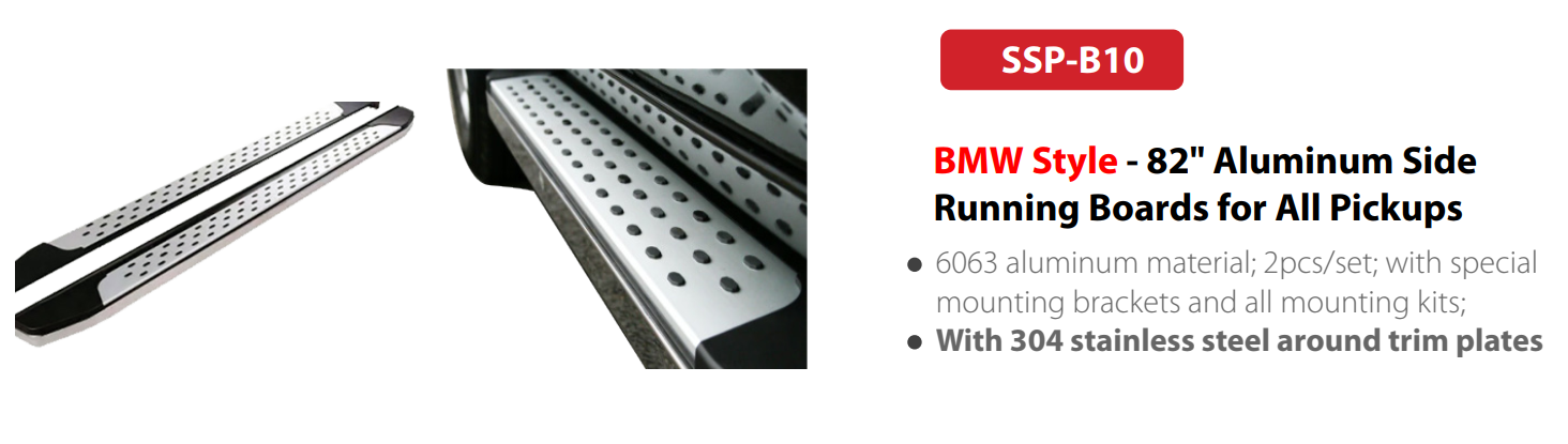 SSP-B10 | BMW Style – 82″ Aluminum Side Running Boards for All Pickups
